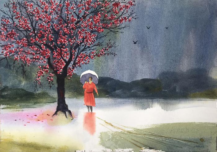 Michael Friedland Spring Rain Pink Blossoms Red Dress Honorable Mention Spring Into Art 10 x 15 inches $750 |